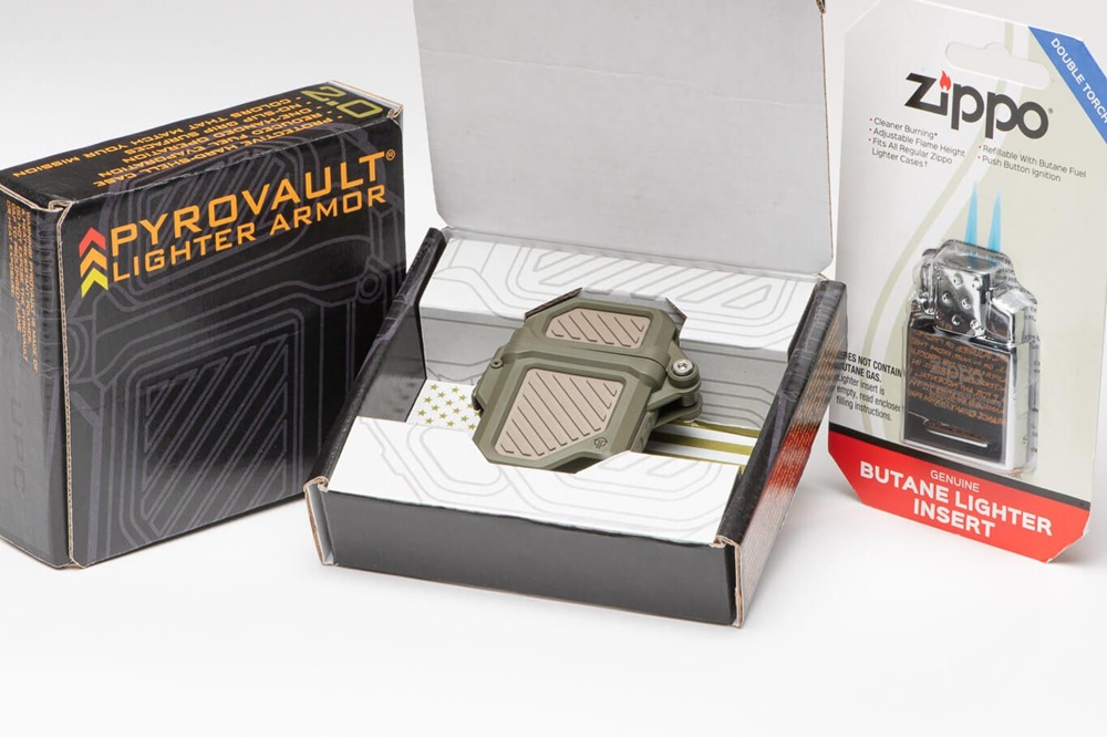 Pyrovault 2.0和Thyrm Zippo經典打火機在美國製造。 Zippo丁烷插入物和Bit Safe插入物被匯入。